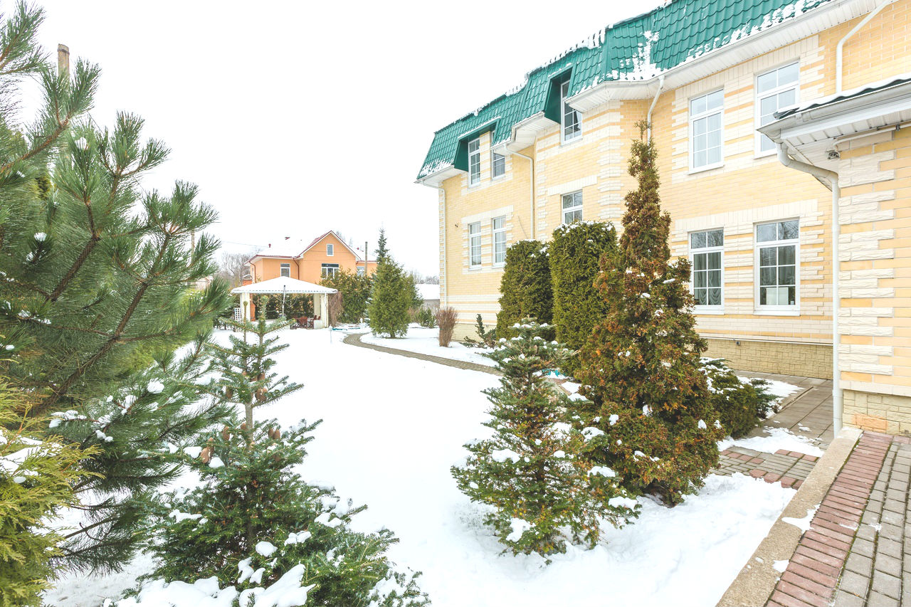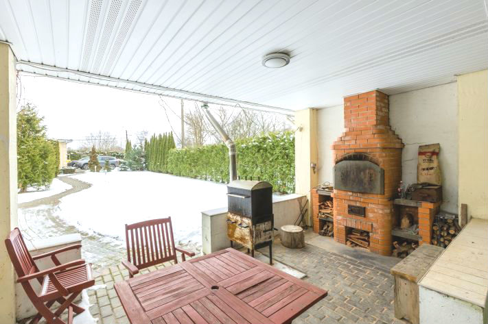 Территория вокруг дома — 1600 м2. Живая изгородь, фруктовый сад и зона барбекю с мангалом и коптильней.