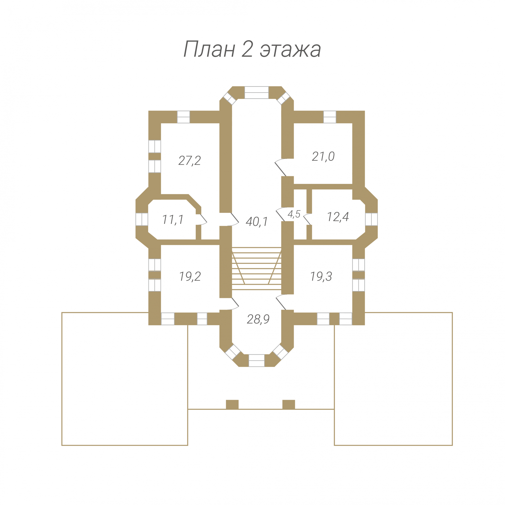 Нижняя левая часть схемы — спальня, площадью 19.2 м2. Рядом — спальня с гардеробной.
